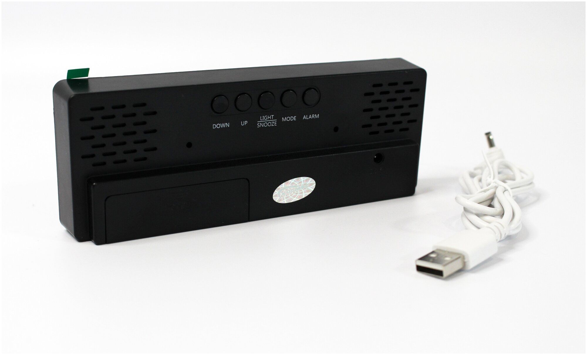 Часы настольные электронные с проекцией: будильник, термометр, календарь, 19.6 х 6.5 см