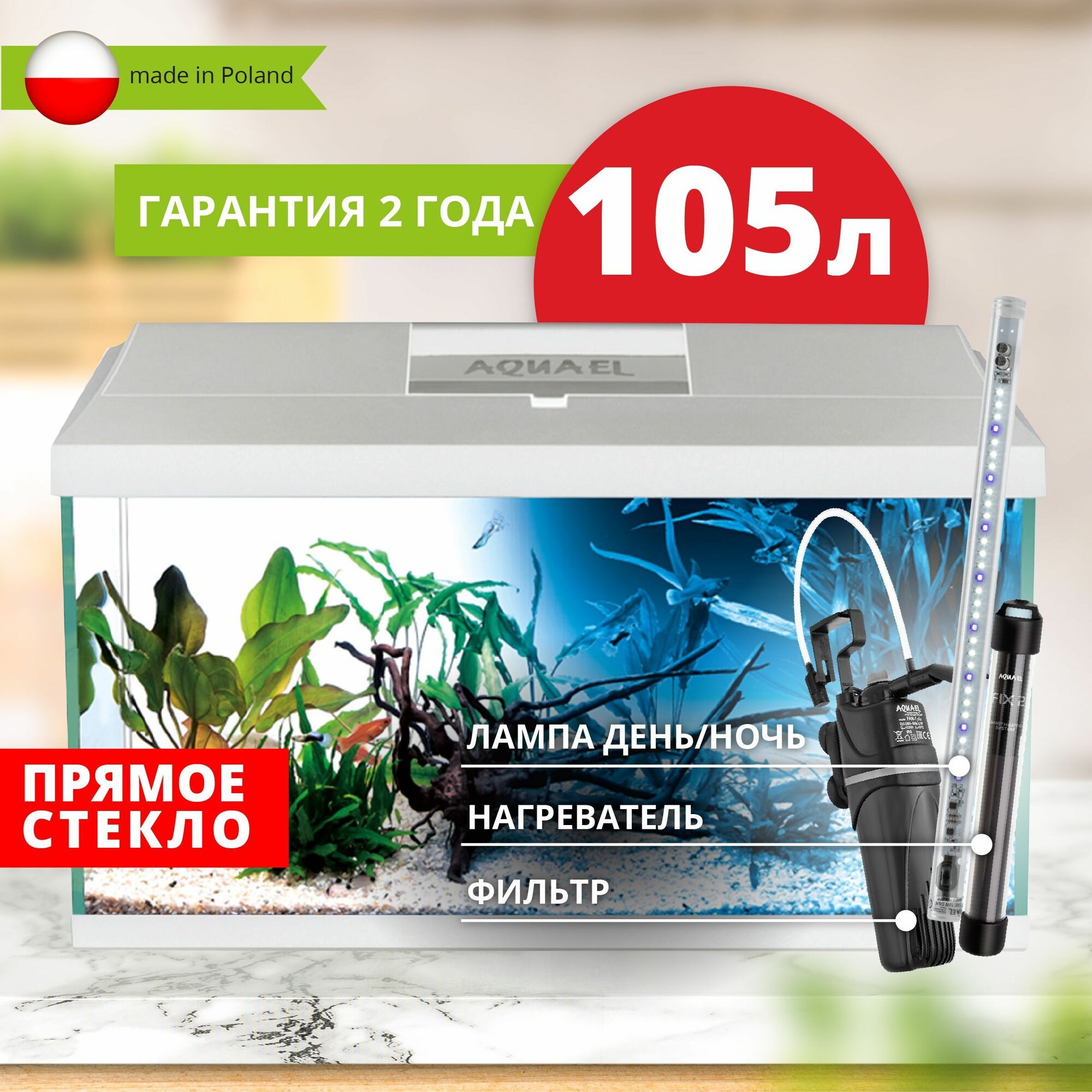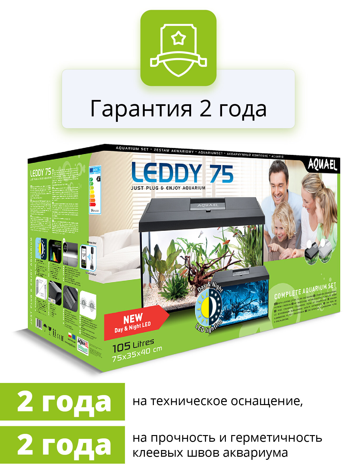 Аквариум AQUAEL LEDDY SET PLUS DAY & NIGHT 2.0 75 белый (105 л) интересное: