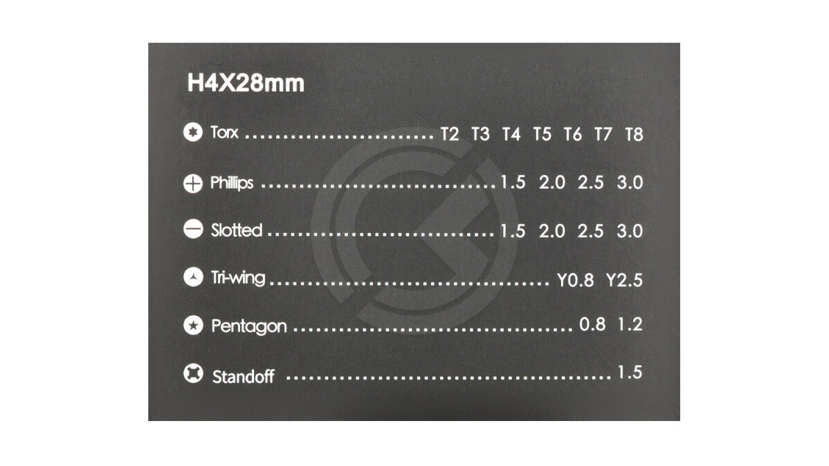| Шлицы отвёрток | Torx (T/TX) / pentalobe (ромашка) / прямой (SL) / трёхлопастной (tri-wing) |