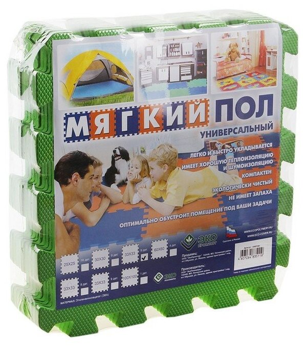 Купить Мягкий пол универсальный 30*30(см) зеленый , 1(м2)-с кромками