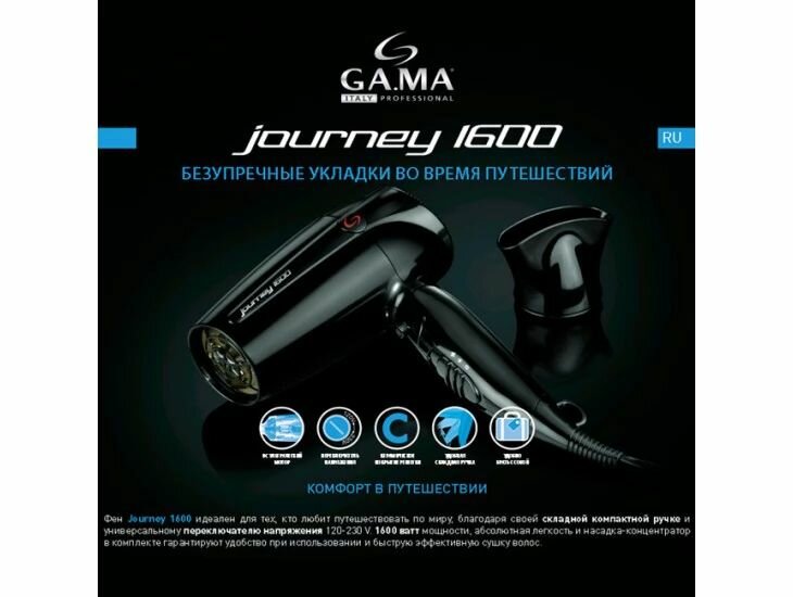 Ниже Вы можете прочитать отзывы на Фен GA.MA JOURNEY 1600, ознакомится с подробными характеристиками, посмотреть интересные обзоры и фотографии на Фен GA.MA JOURNEY 1600.