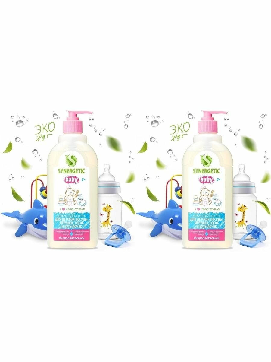 Купить Synergetic Антибактериальный гель для мытья детской посуды, игрушек, сосок и бутылочек 500 мл x 2 шт.