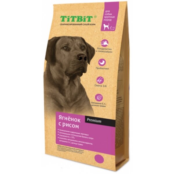 Корм TiTBiT для собак крупных пород, ягненок с рисом, 3 кг