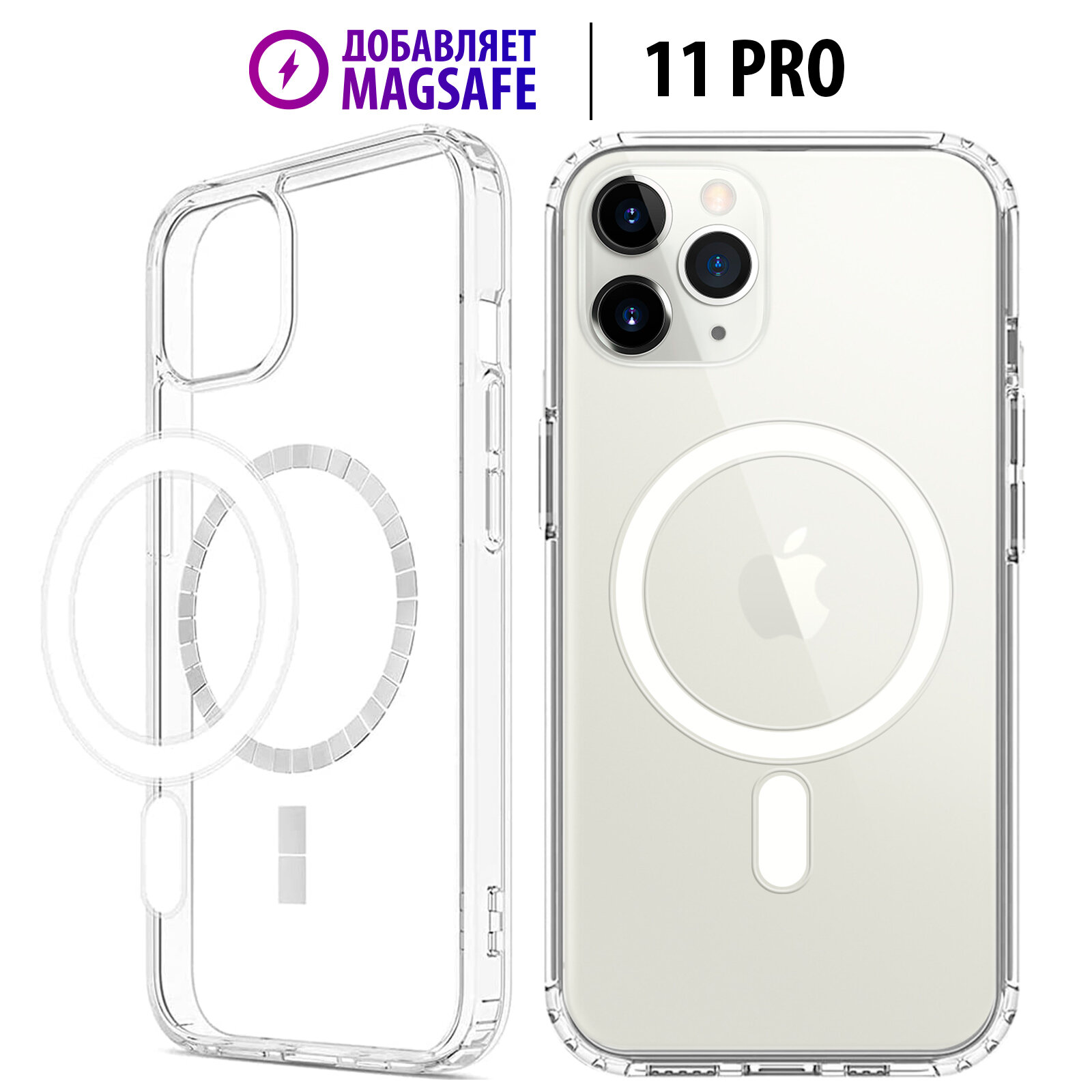 Купить Чехол Luckroute для iPhone 11 Pro - Добавляет функцию MagSafe - Противоударный прозрачный кейс с усиленными углами