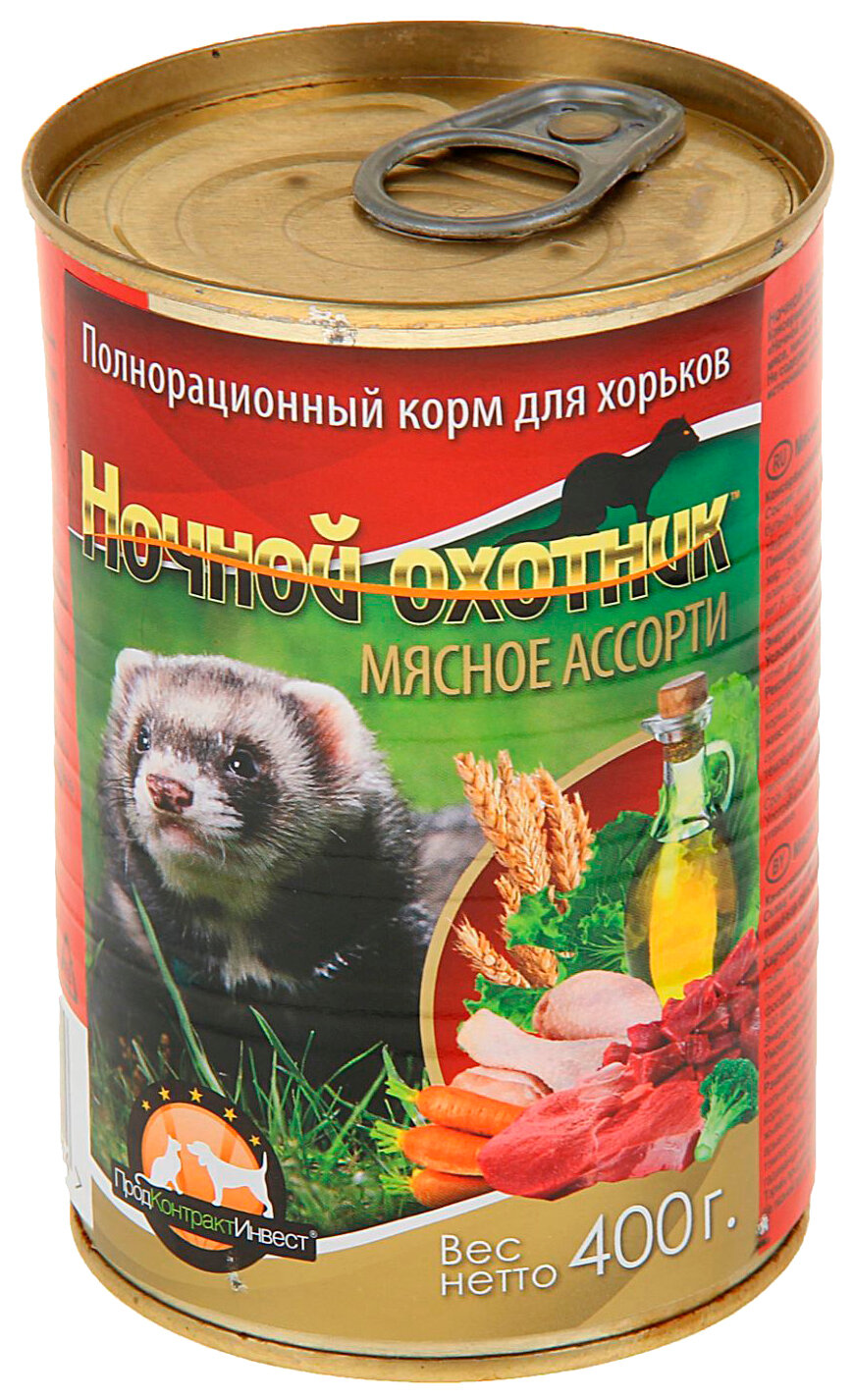 Корм для хорьков Ночной охотник мясное ассорти консервированный , 400 г