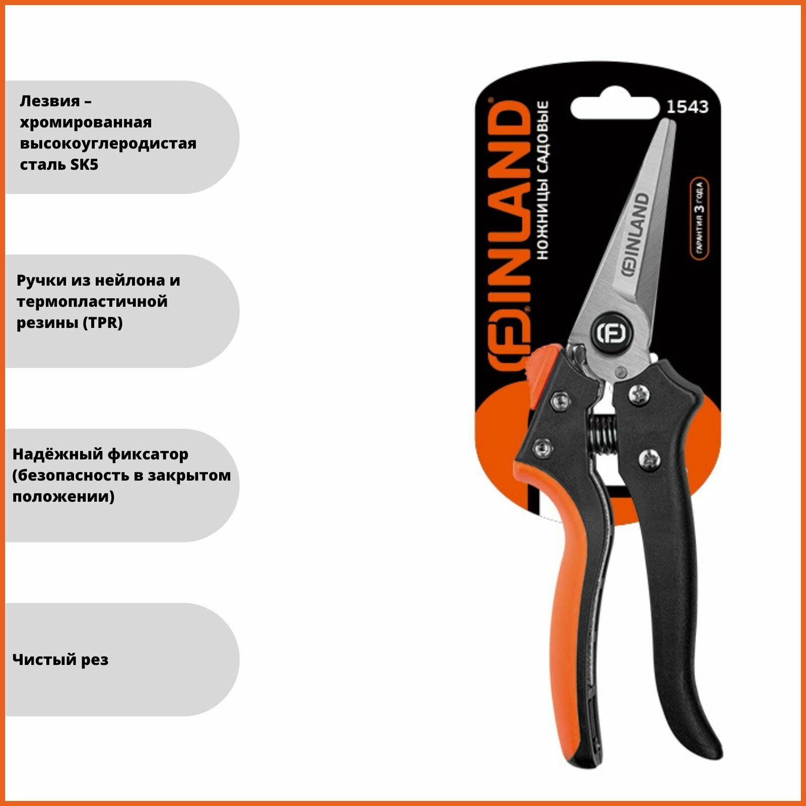 Садовые ножницы Finland 1543 черный/оранжевый