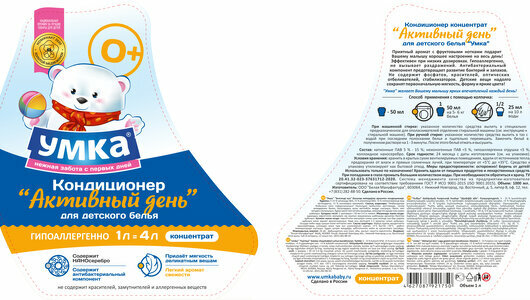 Концентрированный кондиционер для детского белья Активный день Умка