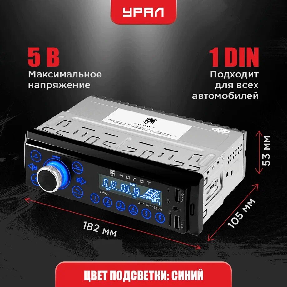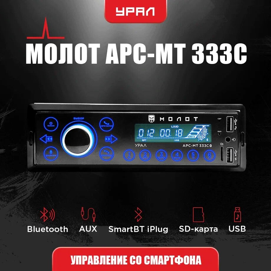 Автомагнитола Молот Арсмт 333К 1 Din, (4X25 Вт), Aux, Sd/Mmc, Usb X2, Bt ,Красная Подсветка Урал Молот Арс-Мт 333К урал арт. ...