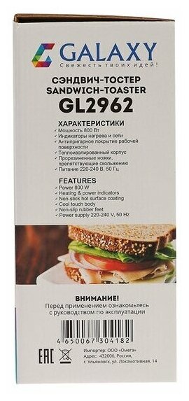 Сэндвич-тостер GALAXY LINE GL2962 (гл2962л)