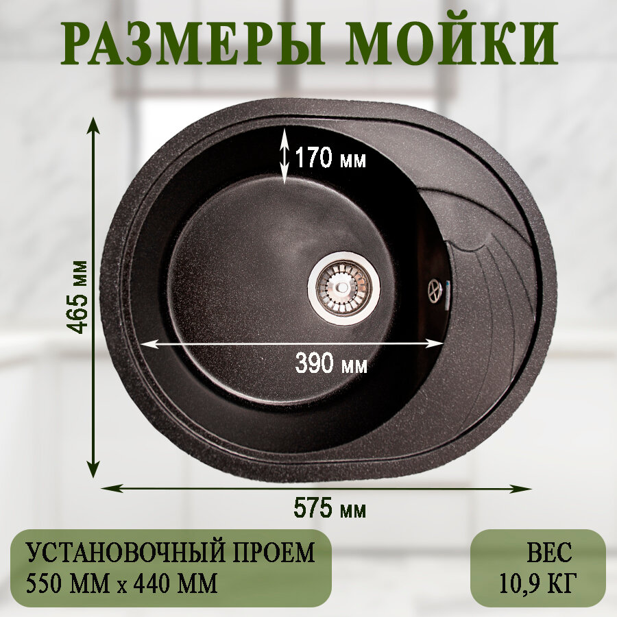 Мойка для кухни мраморная GranAlliance Черная матовая овальная 575х470 без сифона интересное: