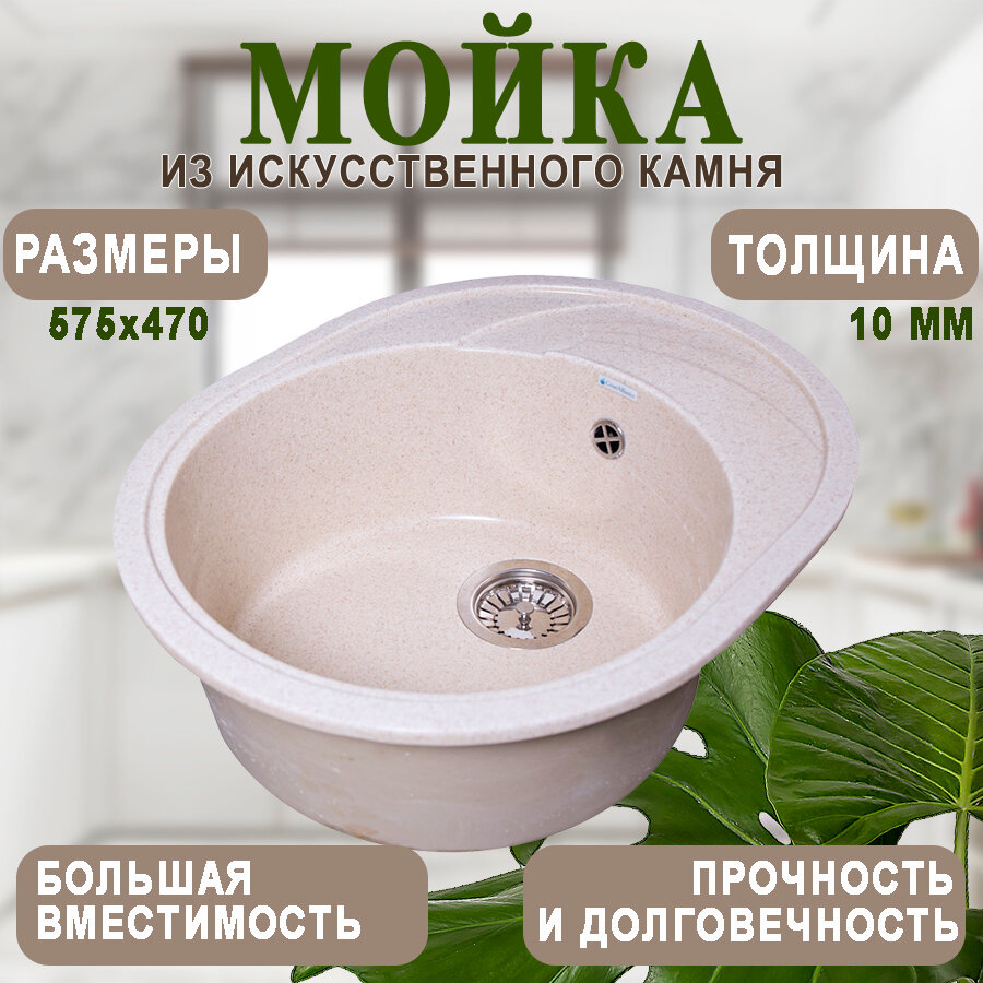 Мойка для кухни мраморная GranAlliance Бежевая матовая овальная 575х470 без сифона интересное: