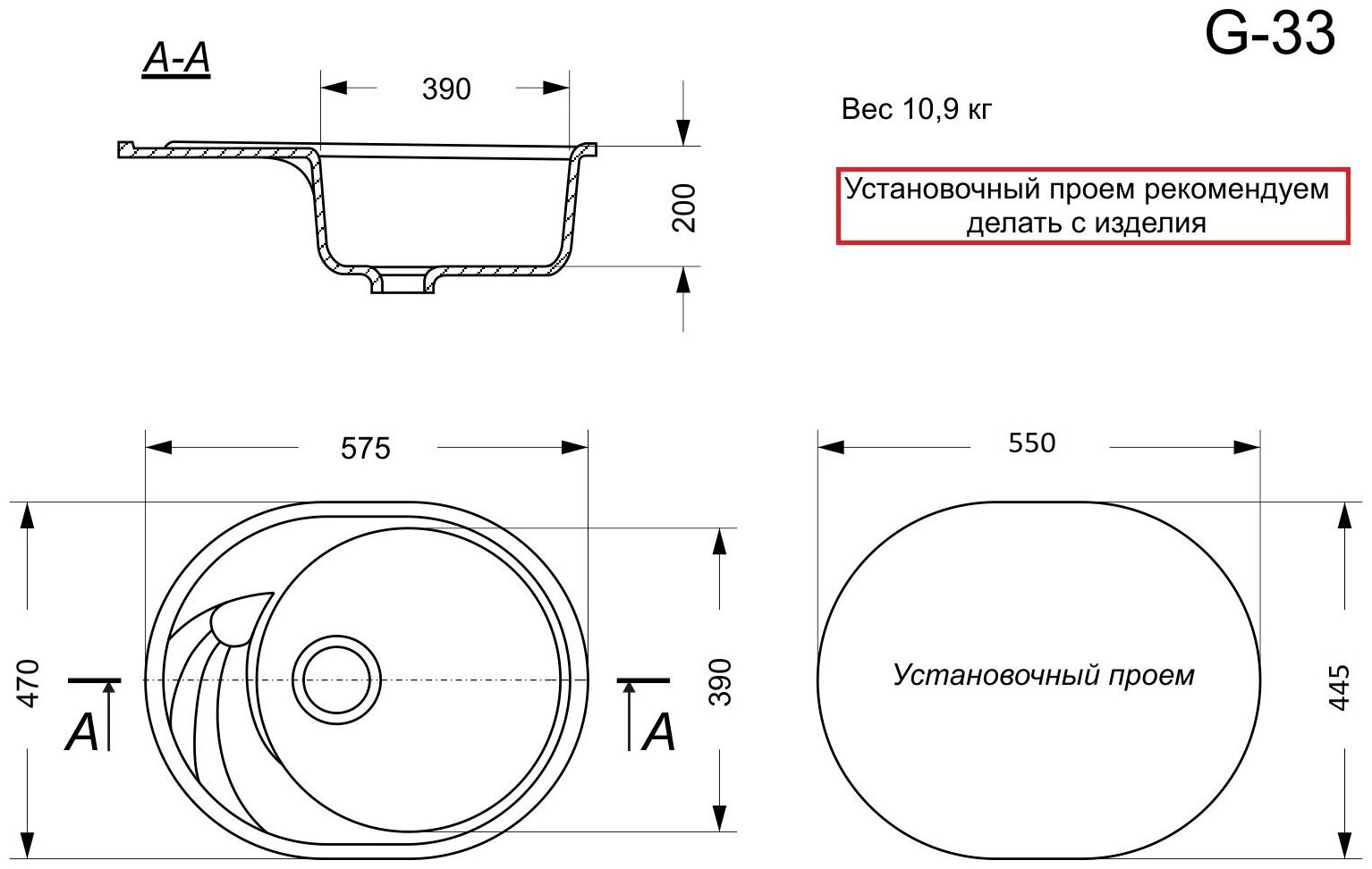 | Дополнительная информация | G-33 Односекционная реверсная мойка Общий размер: 575х470 мм Размер чаши: 390х180 мм Установочный проем: 550х445 мм |