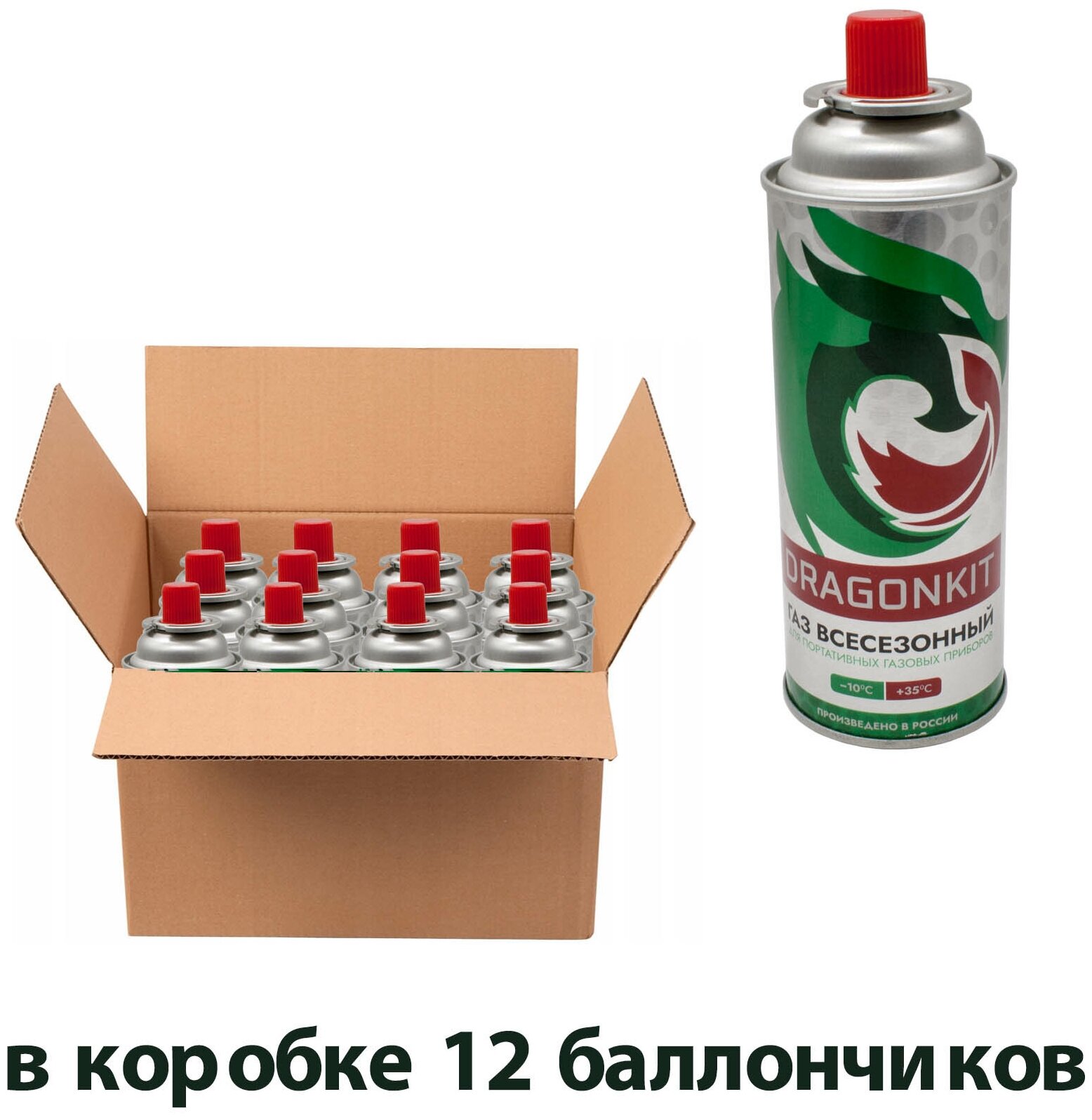 Купить Цанговый (всесезонный газ для горелки, плитки) баллончик газовый одноразовый туристический DRAGONKIT (Комплект 12шт)220 гр.