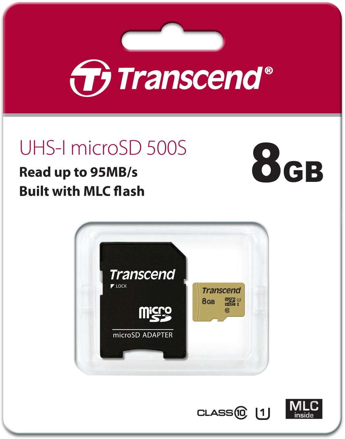 Карта памяти 8GB Transcend TS8GUSD500S microSDHC Class 10 U1 500S + адаптер, MLC