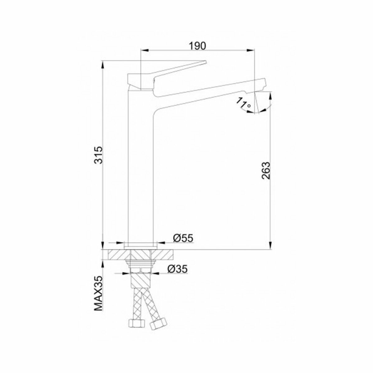 | Длина излива | 190 мм |