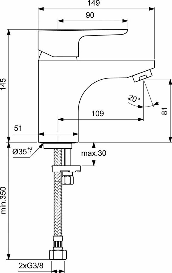 Ideal Standard CERAPLAN 3 Смеситель для умывальника GRANDE B0705AA без донного клапана интересное: