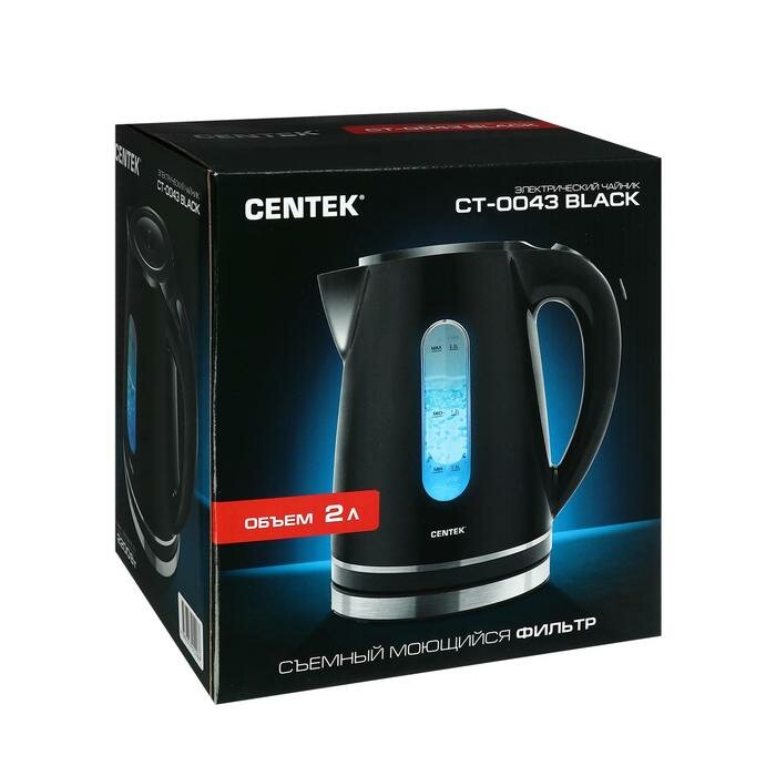 Купить Чайник электрический Centek CT-0043, пластик, 2 л, 2200 Вт, подсветка, черный