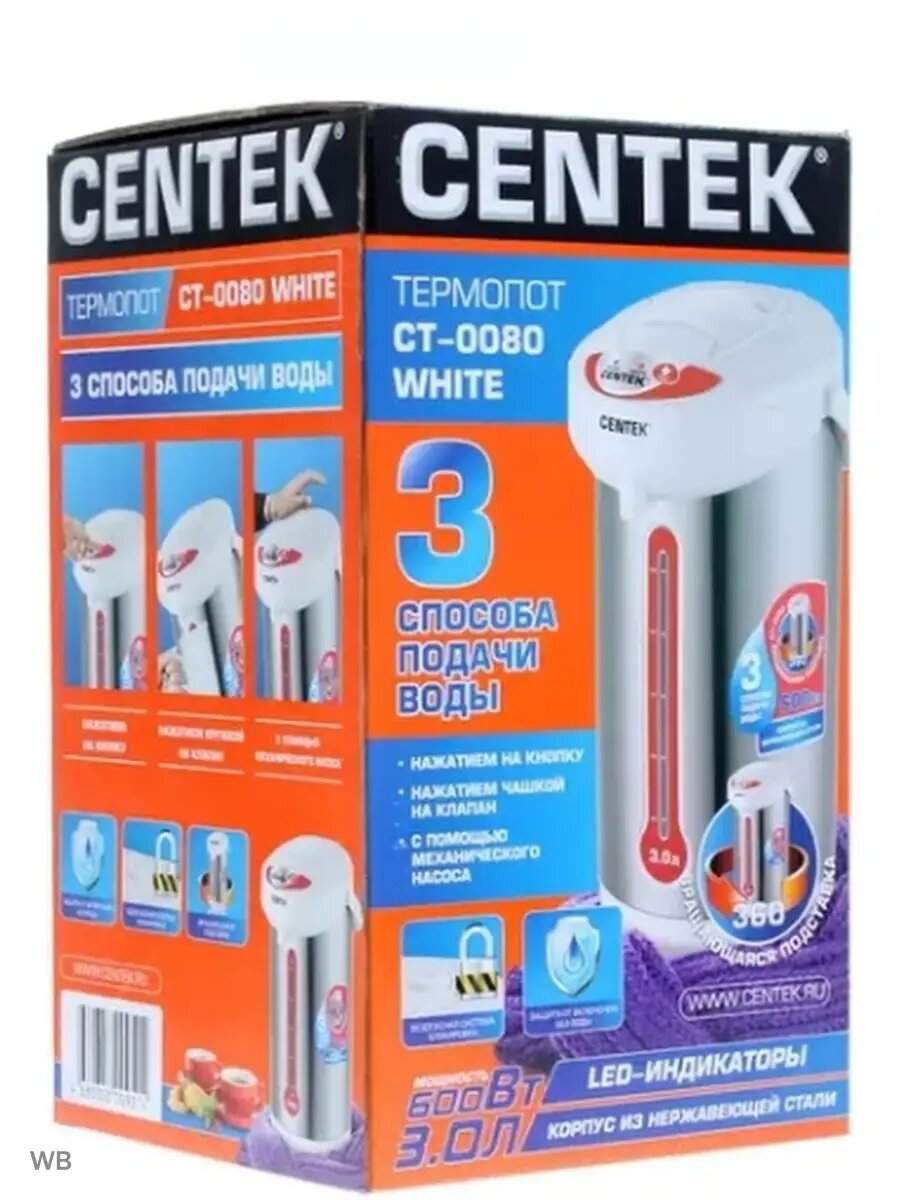 Купить Термопот Centek CT-0080, 3 л, 600 Вт, белый