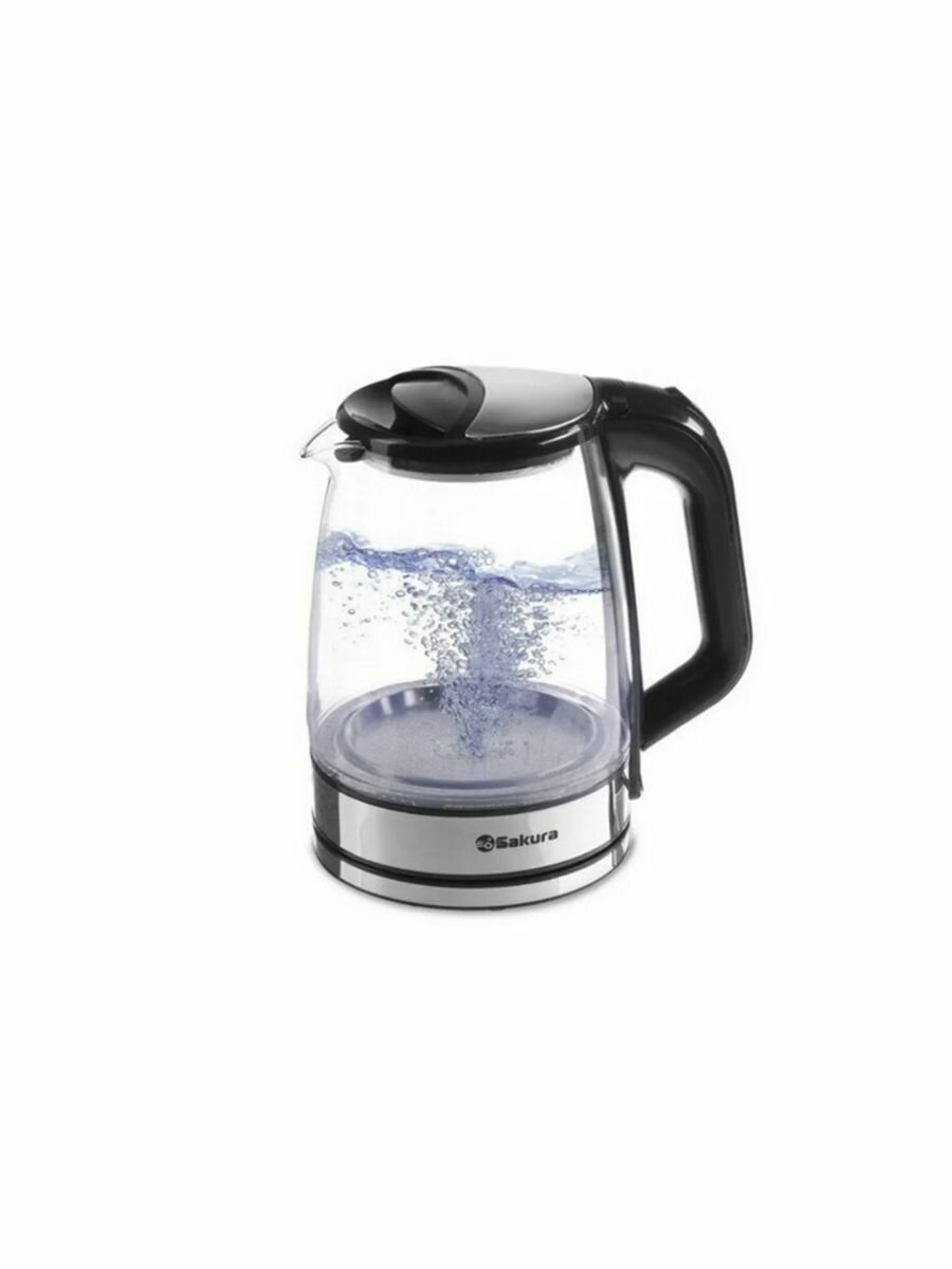 Купить Чайник электрический Sakura SA-2722BK, стекло, 2.2 л, 1800 Вт, подсветка, серебристый