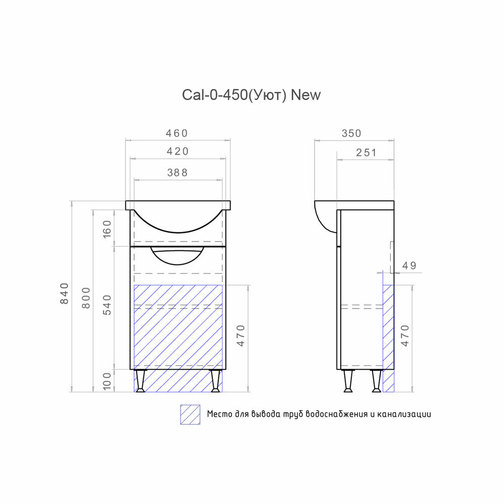 Тумба Vigo Callao 45, tn.CAL.UYU.45.1D напольная (под раковину Уют 45),белый