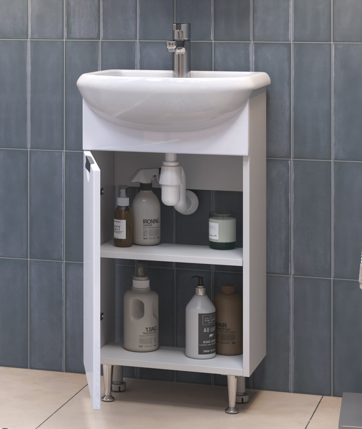 Тумба под раковину в ванную Flamenco, Фламенко 504, белая, 47 х 28.2 x 81 см мебель для ванной