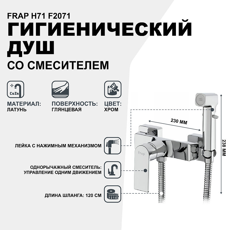 Смеситель с гигиеническим душем FRAP H71 F2071, хром, латунь