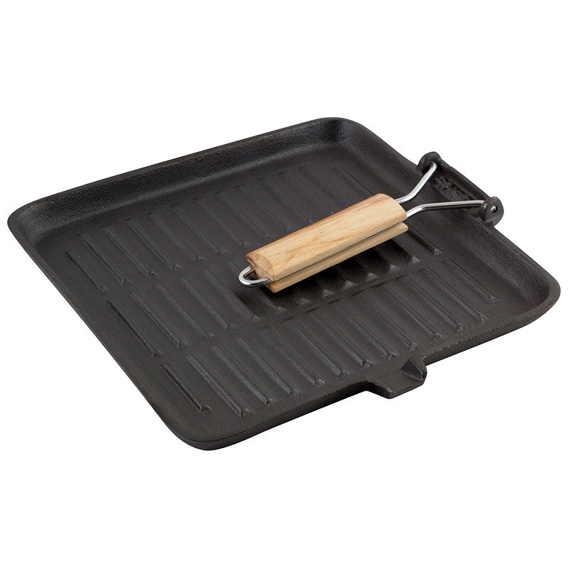 Сковорода-гриль чугунная с дерев складной ручкой, квадратной формы, PADELLA, 28*28 см