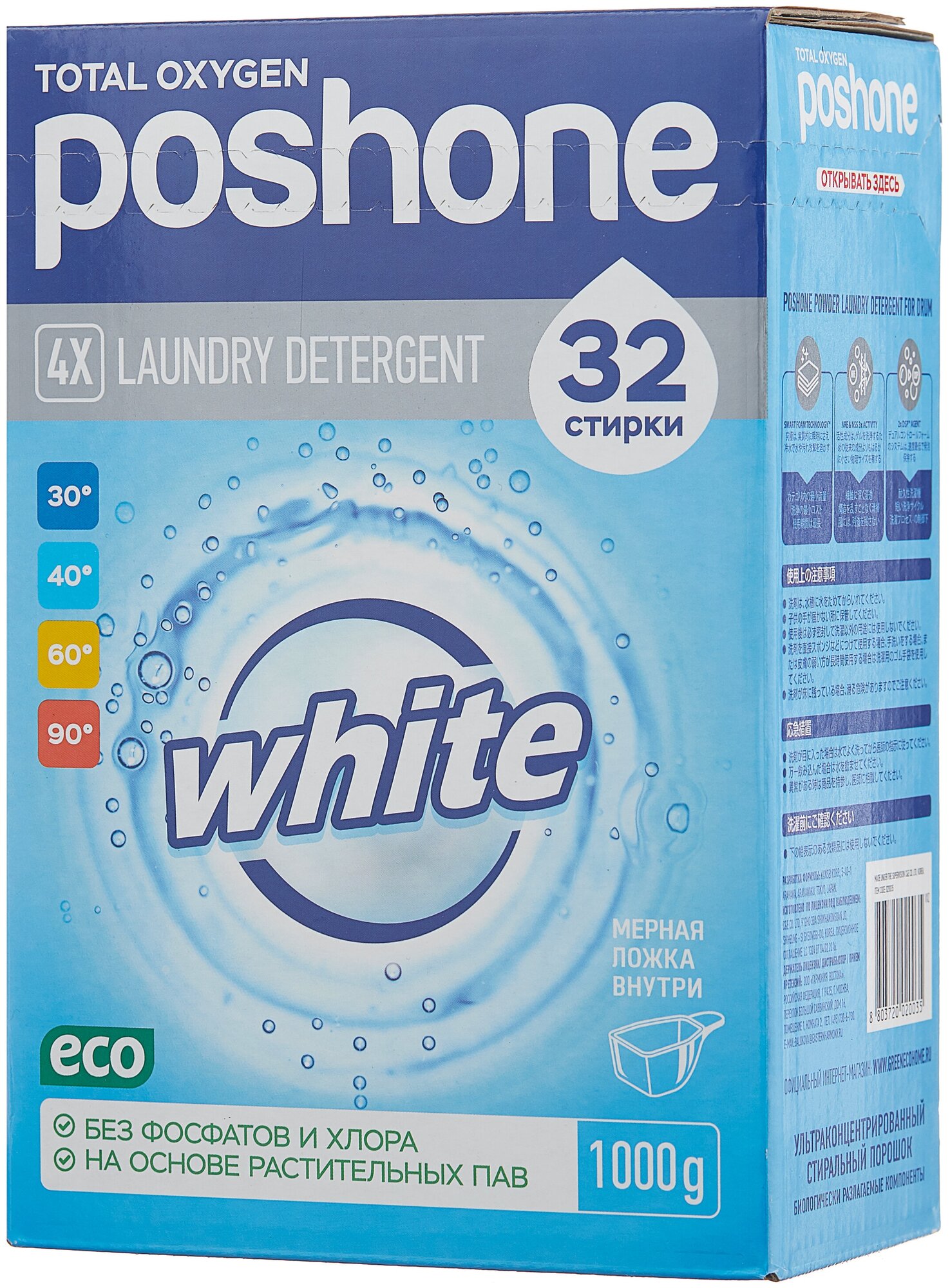 Ультраконцентрированный стиральный порошок для белого белья Posh One White 1 кг интересное: