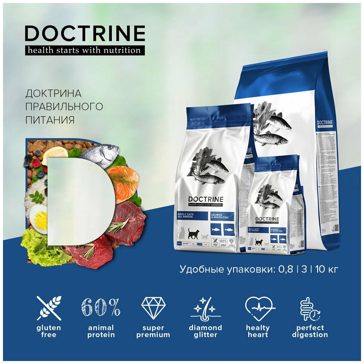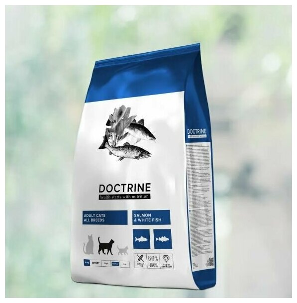 Купить DOCTRINE сухой корм для взрослых кошек с лососем и белой рыбой тресковых пород 3кг