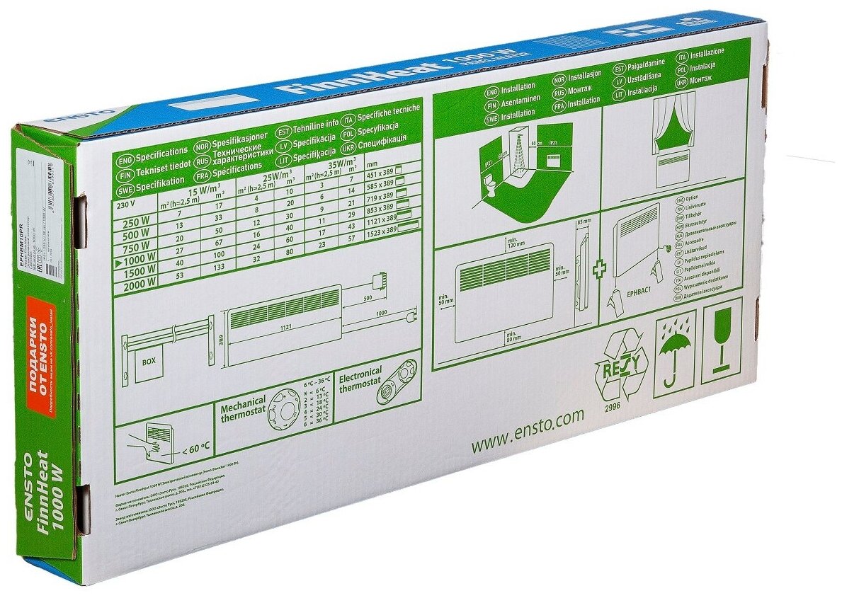 ENSTO FinnHeat EPHBM10PR конвекторный обогреватель 1000 Вт механический термостат