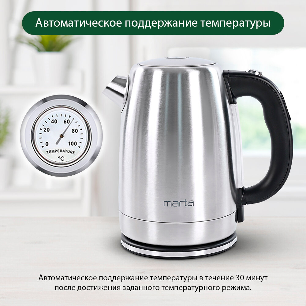Электрический чайник MARTA MT-4564 черный жемчуг металлический с контролем температур, умный 1.7 л