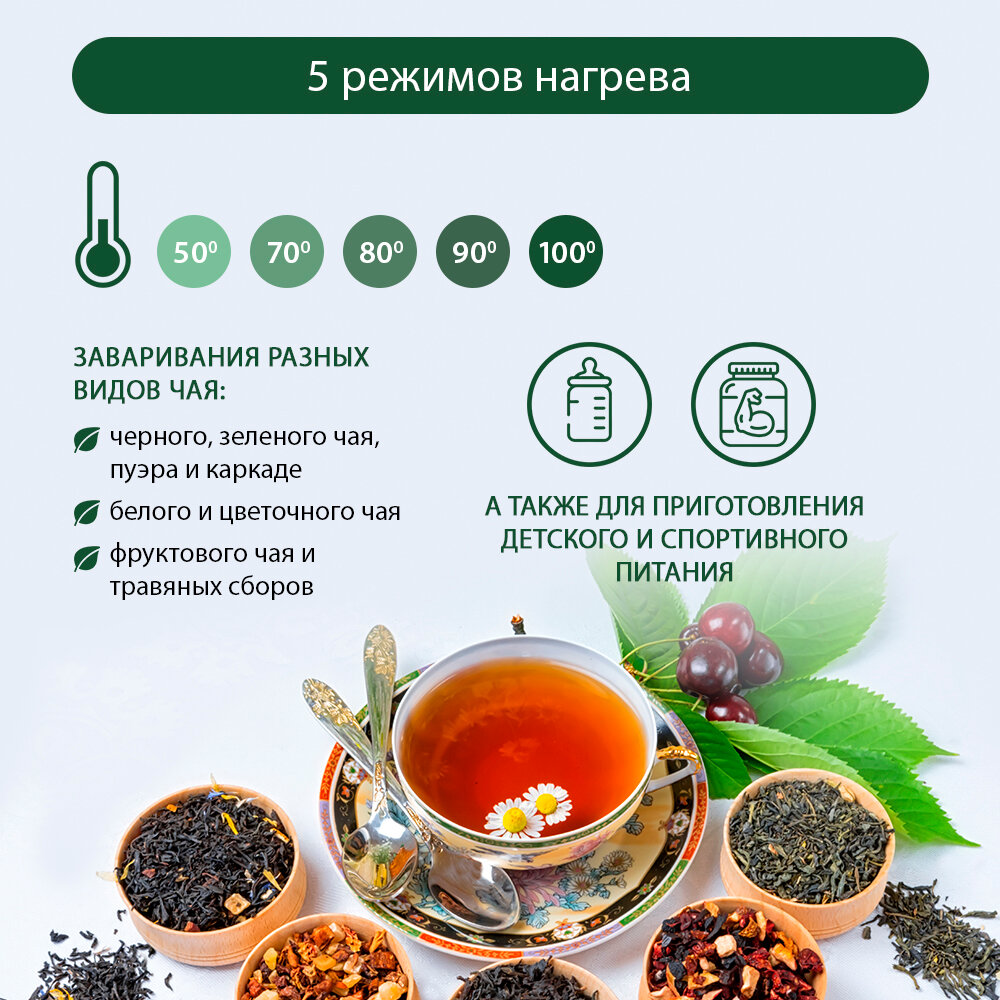 | Отзыв: | Купил этот чайник взамен старому когда сломался, выбрал именно эту модель тк у него 5 режимов работы и это удобно. Травяной чай поскольку лучше заваривать при 80 градусов, не более поскольку больше веществ сохраняется полезных. Металл из нержавеющей стали и корпус сам прочный, надеюсь чайник прослужит долго, выбором своим однозначно доволен. Воду нагревает он быстро. |