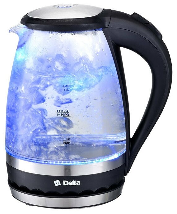 Чайник электрический 1.5Л 2200ВТ диск стекло LED подсветка черн DELTA интересное: