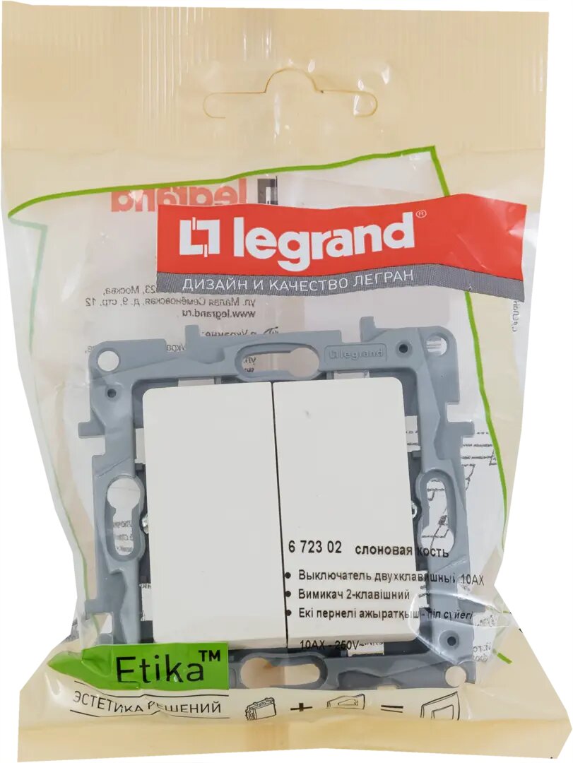 Купить Выключатель встраиваемый Legrand Etika 2 клавиши, цвет слоновая кость