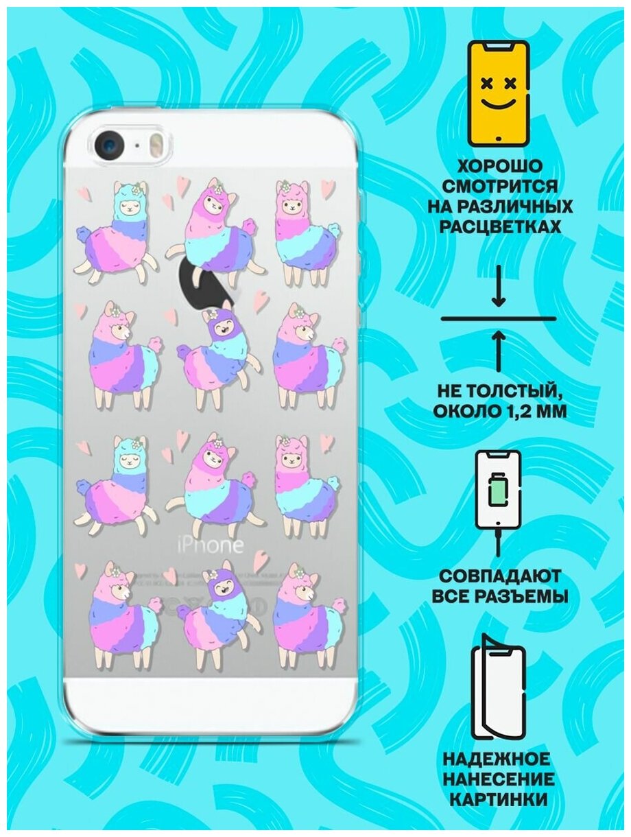 Силиконовый чехол на Apple iPhone 5/5s/SE Фиолетовые ламы / для Эпл Айфон 5/5C/CE интересное: