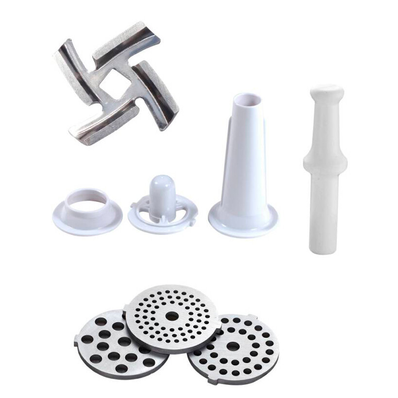| Плюсы: | Качественная сборка, крепкий пластик, хорошее качество насадок, 3 диска в комплекте, для приготовления колбас и кеббе, можно мыть в посудомоечной машине. |