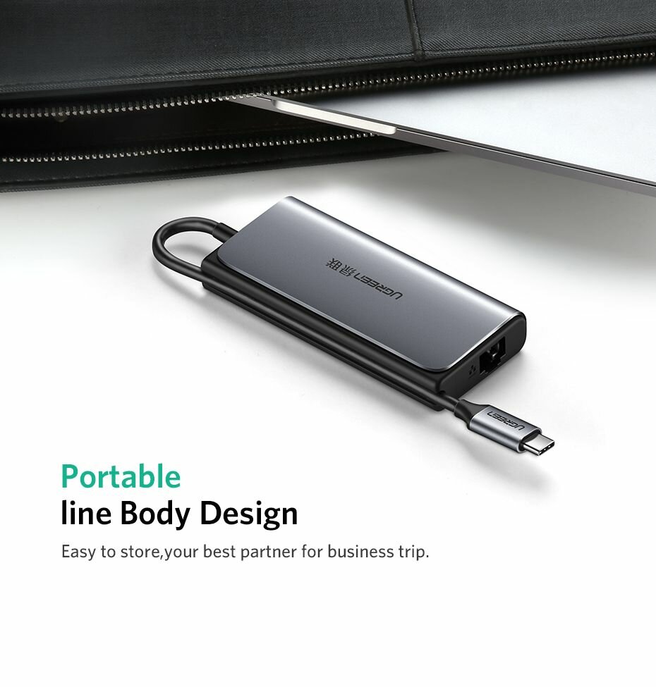Конвертер Type C-USB 3.0 Хаб + Gigabit LAN + PD (CM141) Ugreen интересное: