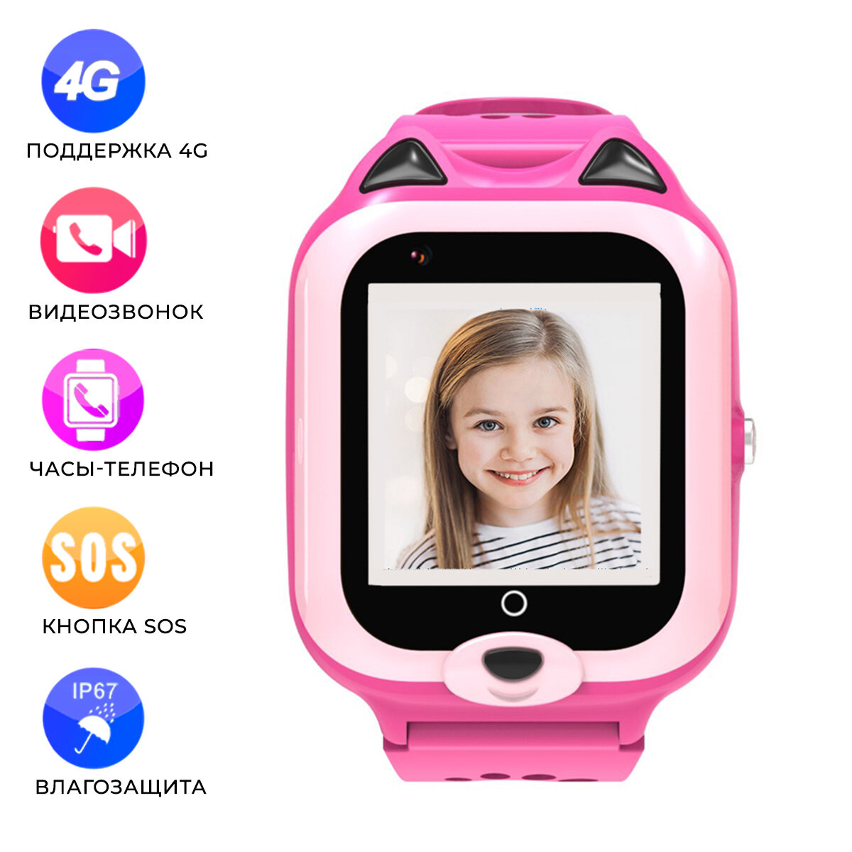 Детские смарт часы-телефон KT22 с GPS, видеозвонком, виброзвонком, камерой и 4G. Умные часы для детей Wonlex Smart Baby Watch. Розовые