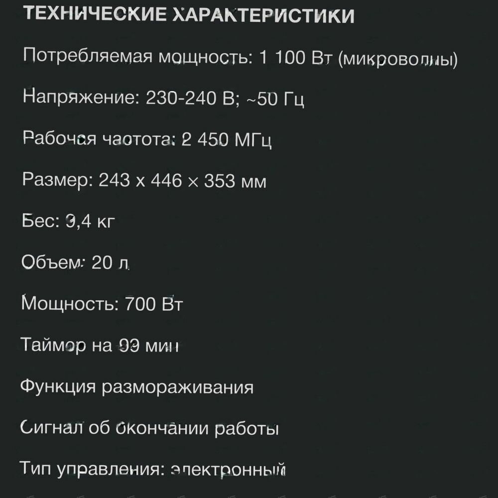 | Мощность микроволн | 700 Вт |