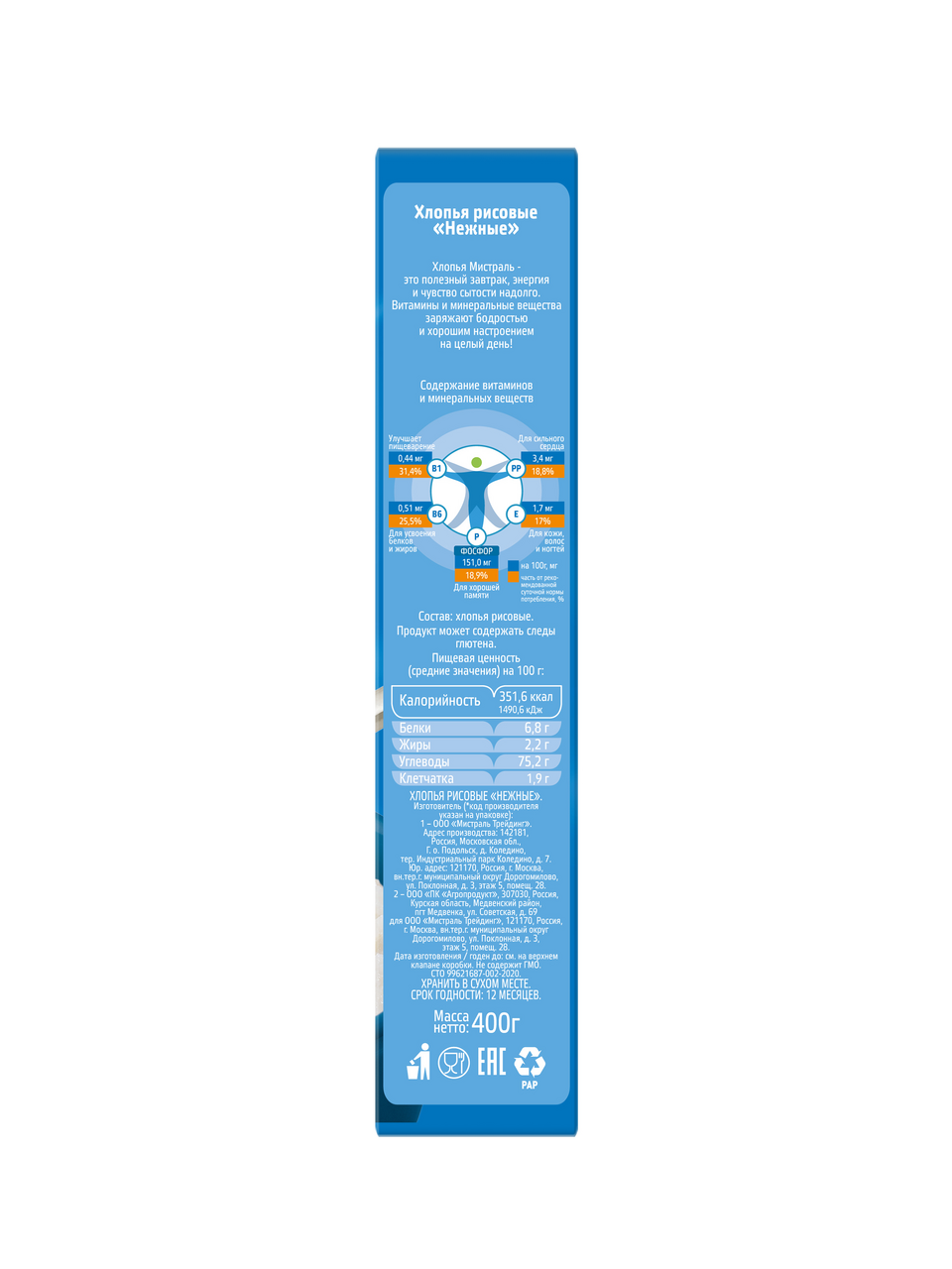 Хлопья мистраль 400 г Рисовые Нежные, 1 шт