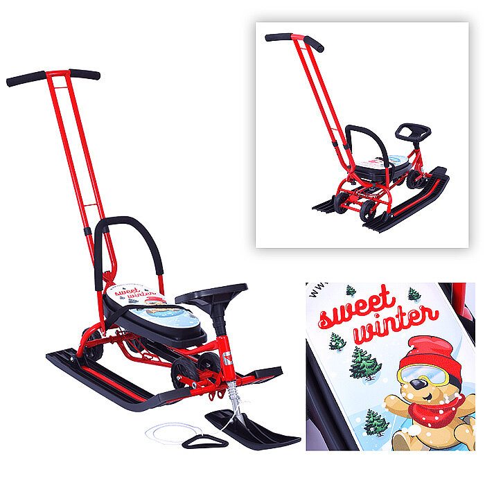 Купить Снегокат Барс 111 Mobile с Т-образным толкателем и колесной базой Sweet Winter красный