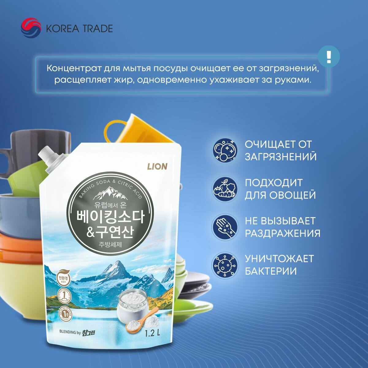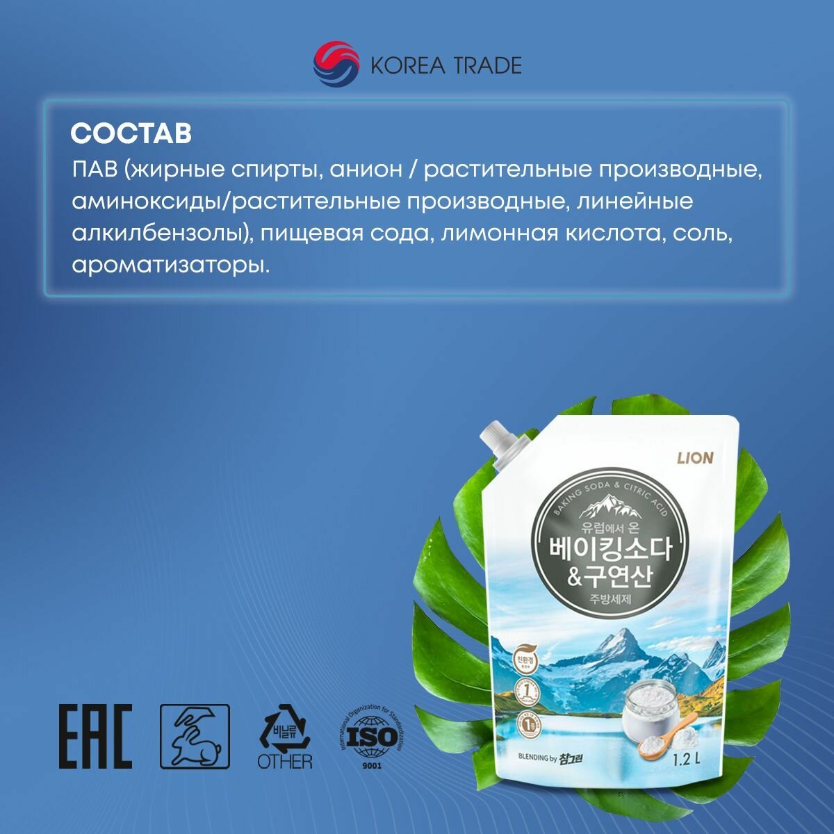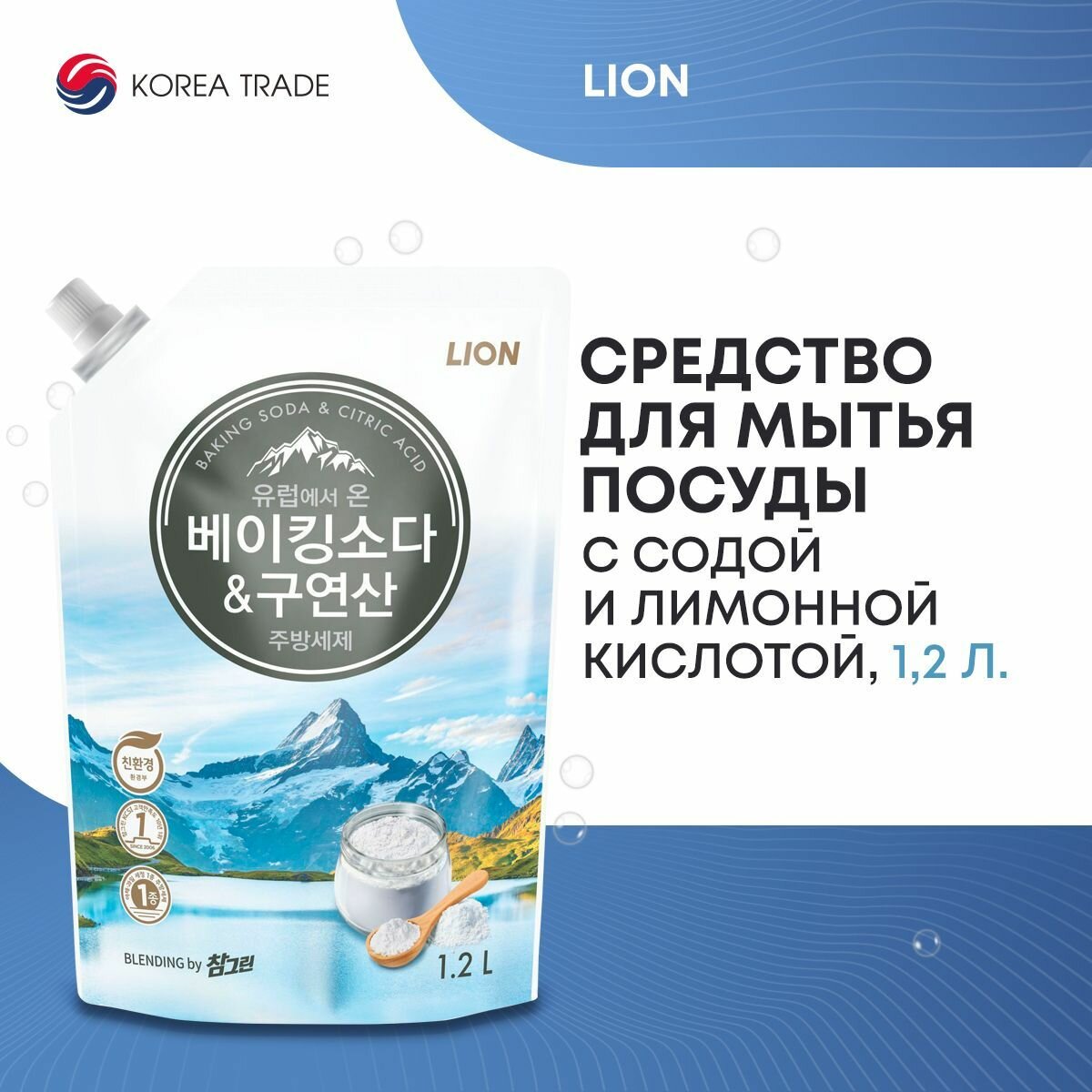 Средство для мытья посуды Lion Chamgreen с содой и лимонной кислотой, 1.2 л, мягкая упаковка