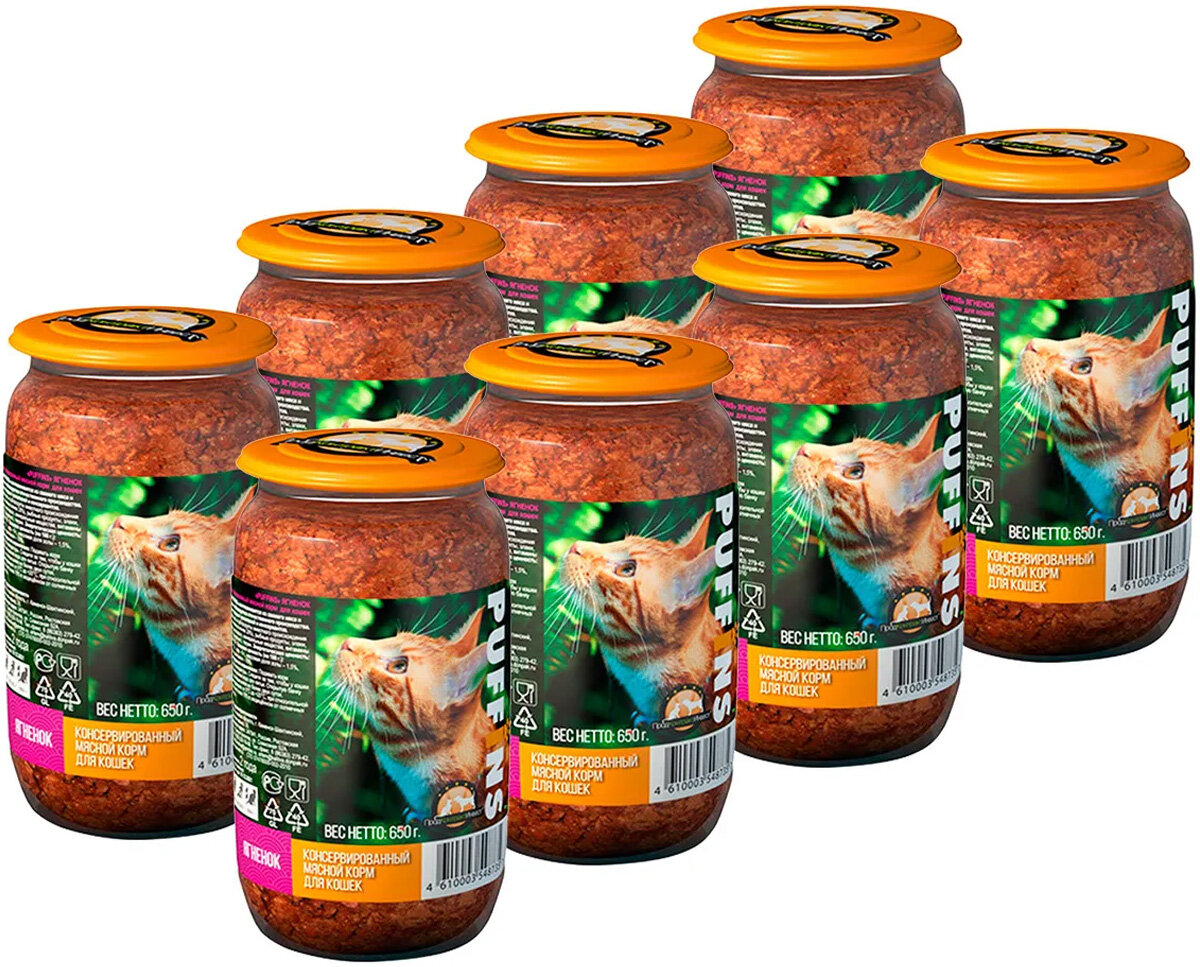 Купить Консервы Puffins 650г для кошек Ягнёнок стекло (Упаковка 8шт)