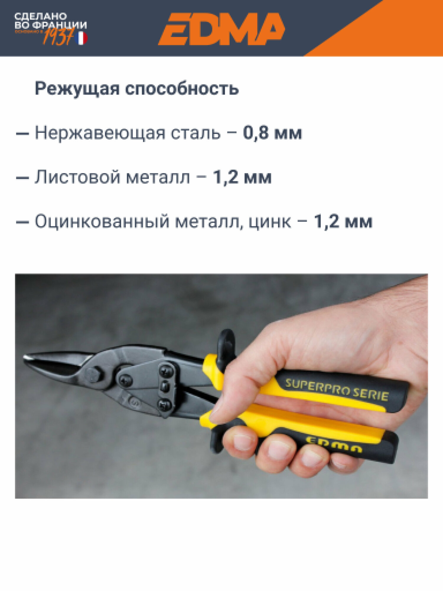 Ниже Вы можете прочитать отзывы на Ножницы по металлу строительные, авиационные, универсальные 42 мм., EDMA, ознакомится с подробными характеристиками, посмотреть интересные обзоры и фотографии на Ножницы по металлу строительные, авиационные, универсальные 42 мм., EDMA.