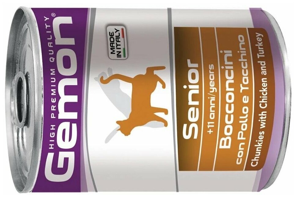 Купить Gemon Cat консервы для пожилых кошек кусочки курицы с индейкой 415г х 12 шт.