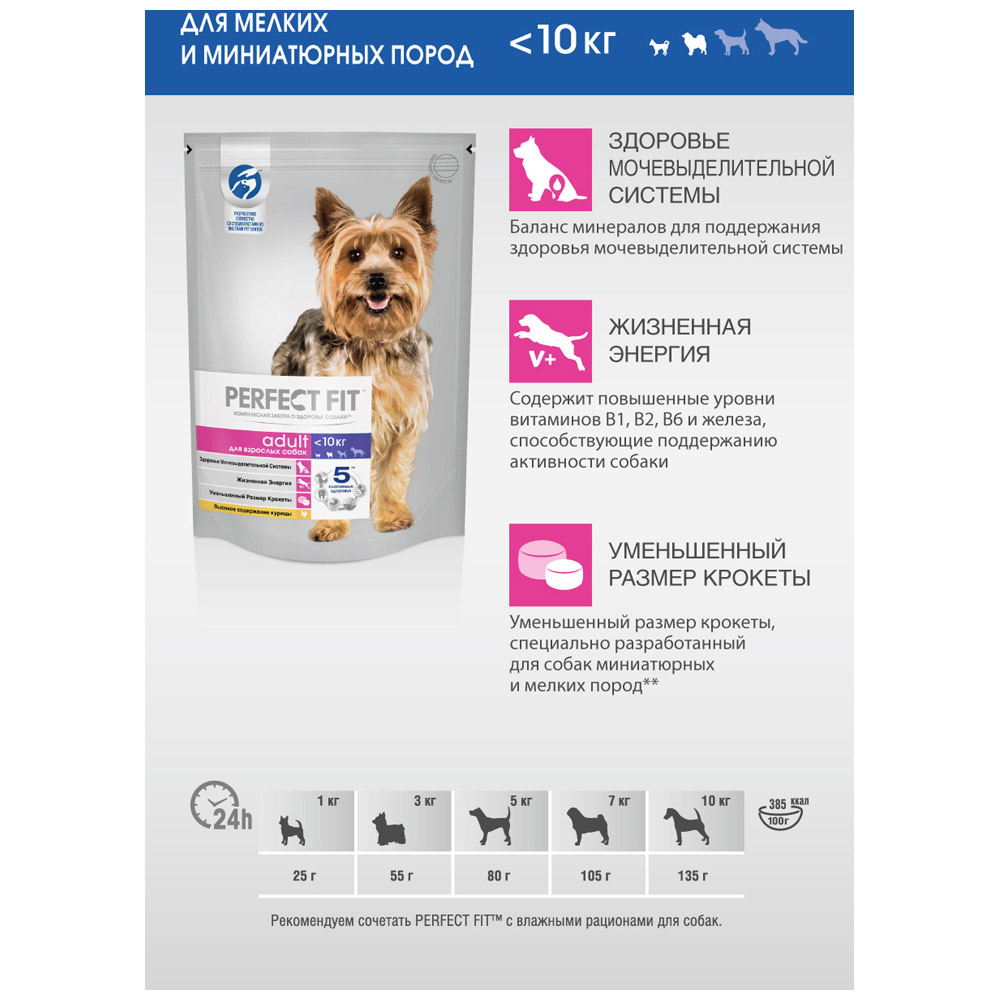 Корм сухой Perfect Fit для взрослых собак мелких и миниатюрных пород, с курицей, 500 г