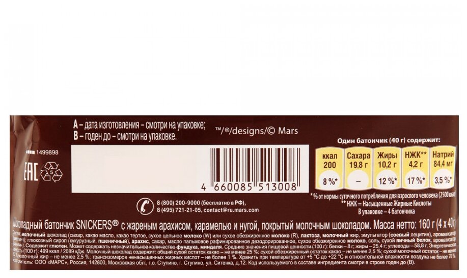 Сохранить4Х40Г батончик SNICKERS шокола интересное: