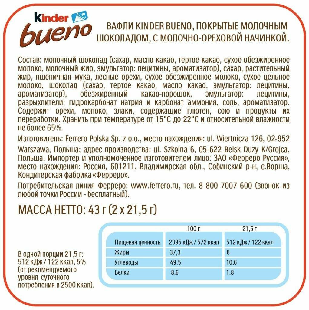 Ниже Вы можете прочитать отзывы на Батончик Kinder Bueno, 43 г, 30 шт., ознакомится с подробными характеристиками, посмотреть интересные обзоры и фотографии на Батончик Kinder Bueno, 43 г, 30 шт..