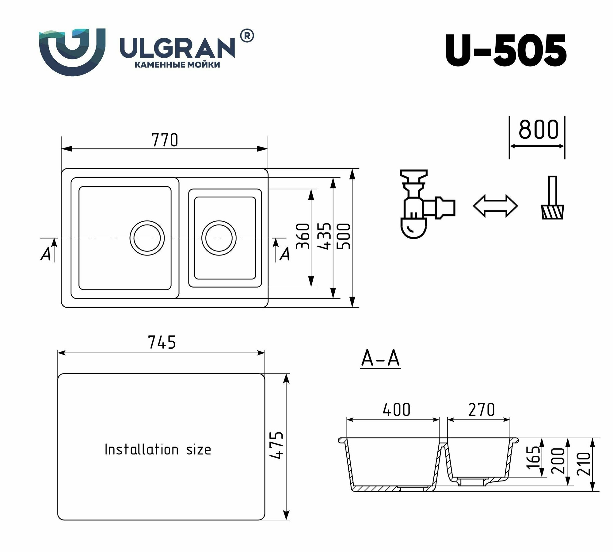 Мойка для кухни Ulgran U-505 (-342, графитовый)