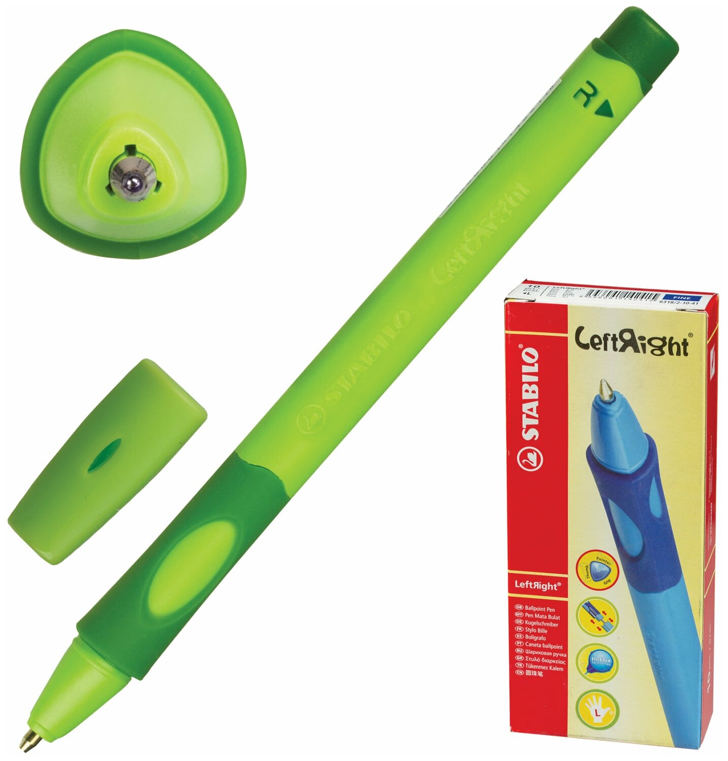 Ручка шариковая STABILO "LeftRight", для правшей, синяя, 0,8мм, грип, зеленый корпус